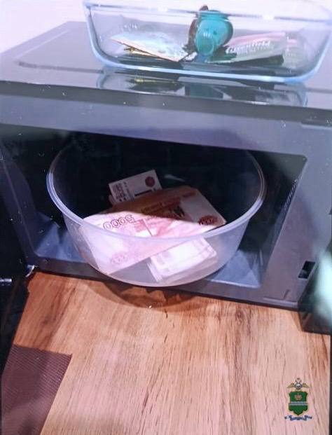 Получив в руки 800 000 рублей, потерпевшая продолжила выполнять распоряжения. В телефонном разговоре ей пояснили, что для передачи денег необходимо проследовать в другой город по указанному адресу. На личном автотранспорте вместе с супругом она приехала на место, где, используя кодовый замок на входной двери, они зашли в одну из квартир. Денежные средства были оставлены в микроволновой печи. В подтверждение выполнения своих действий женщина сделала фотографию и переслала абоненту.