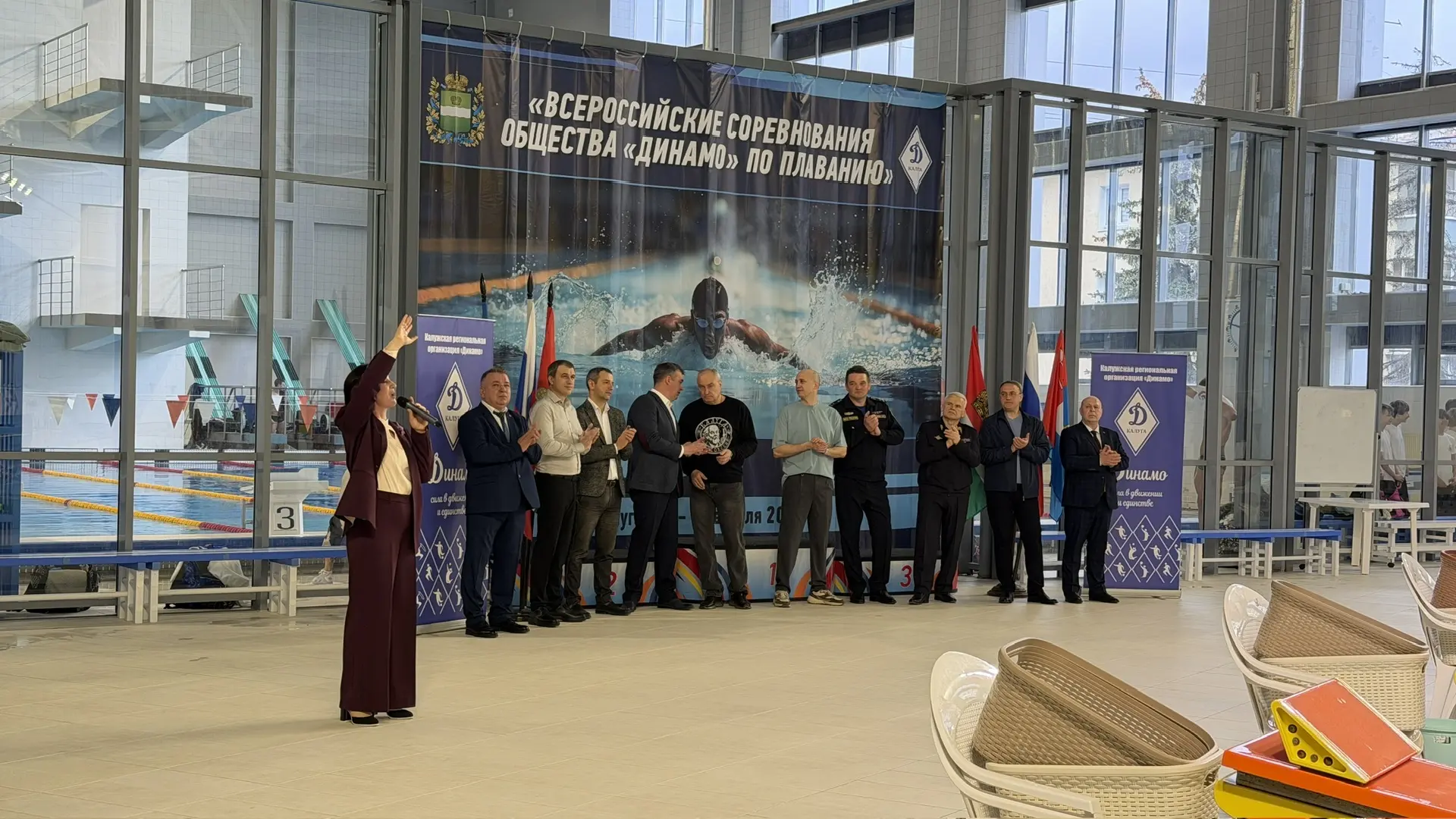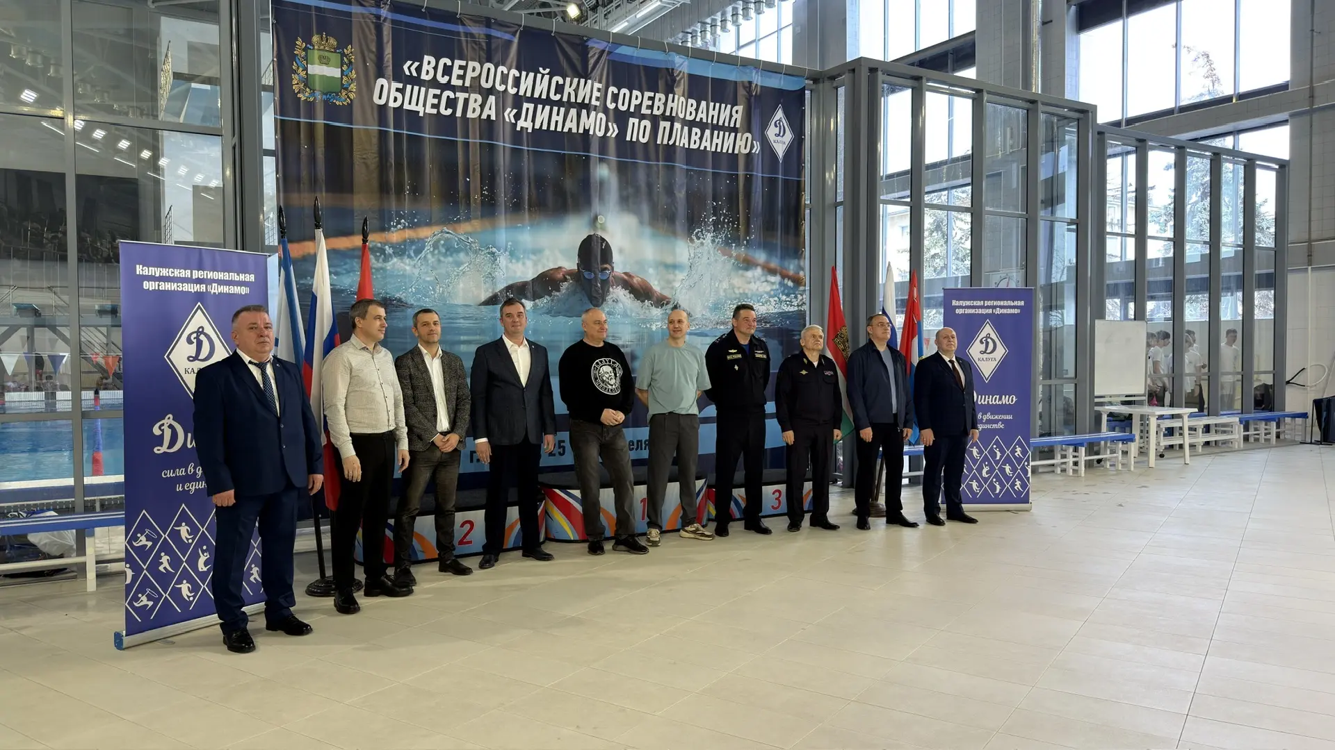 Начальник УМВД России по Калужской области, председатель Калужской региональной организации Общества «Динамо», генерал-майор полиции Сергей Никифоров торжественно открыл всероссийские соревнования по плаванию. Место проведения — Дворец спорта «Центральный» в Калуге.