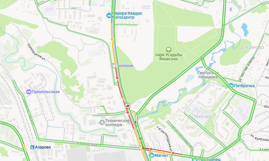 В других частях города машины стоят в заторе из Турынино и между Силикатным и деревней Белой.