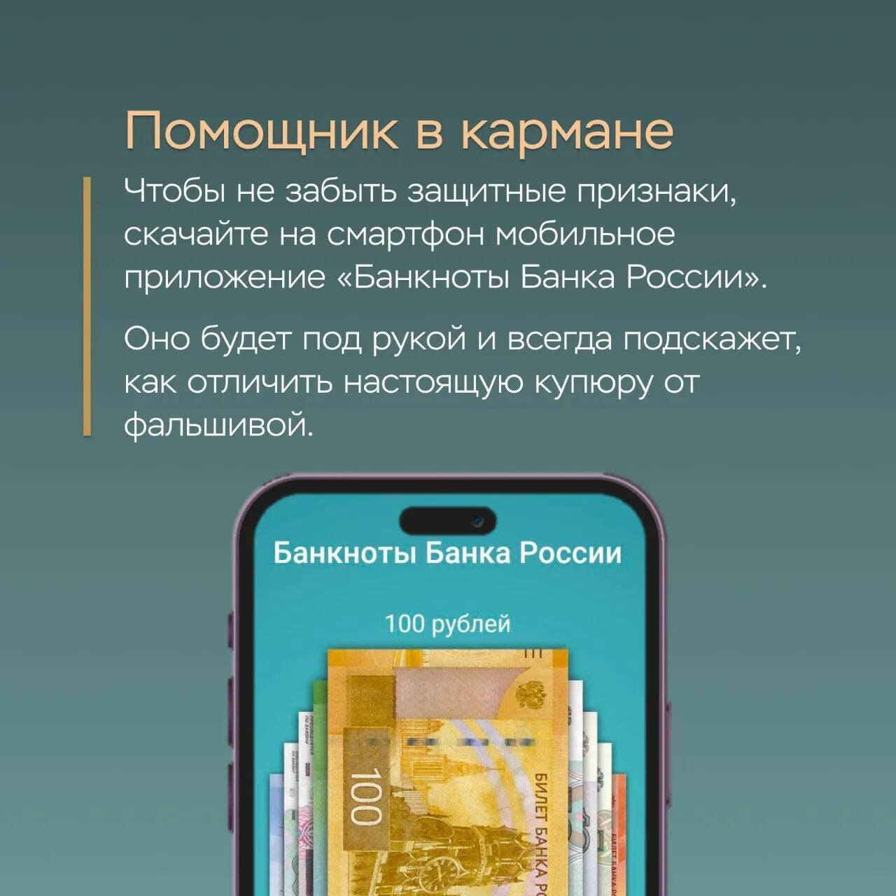 Защитный комплекс новой банкноты усовершенствован. Чтобы информация о защитных признаках была всегда под рукой, скачайте мобильное приложение «Банкноты Банка России».