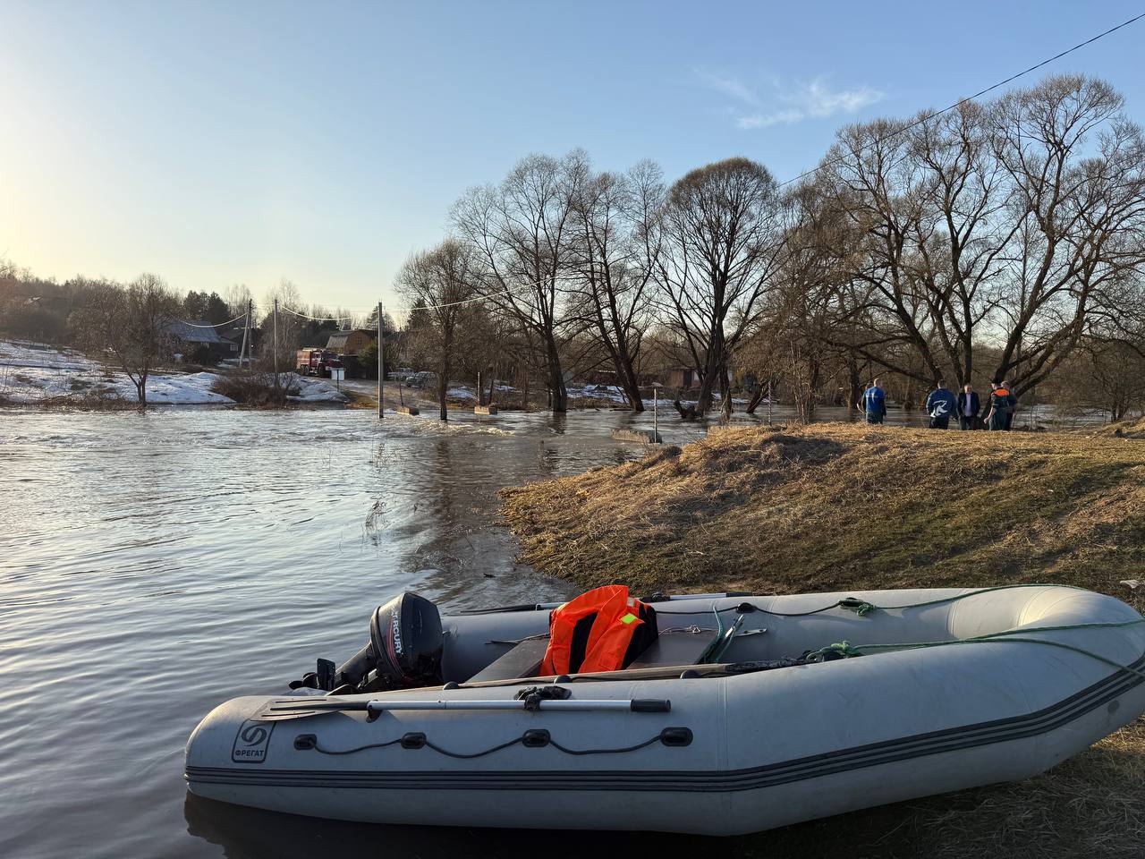 Спасатели вывозят жителей отрезанной паводком деревни в Калужской области на лодке