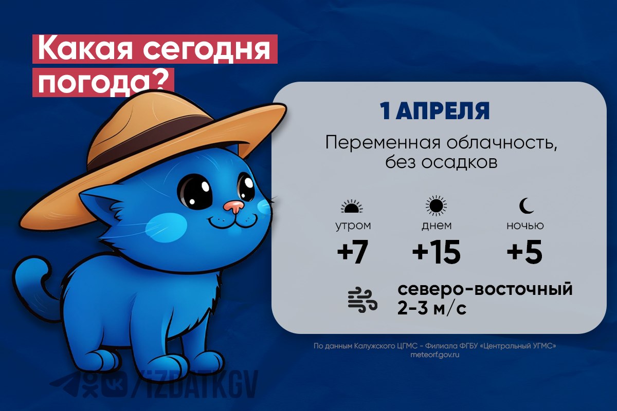 В среду, 1 апреля, в Калужской области ожидается облачная погода с прояснениями. Утром местами пройдёт небольшой дождь.По прогнозу синоптиков столбики термометров утром покажут +8 градусов. Днём воздух прогреется до +15.Ветер северо-восточный, его...