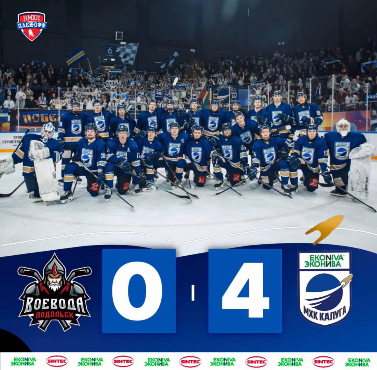 Наша команда завершила серию с «Воеводой». Сначала «Калуга» дважды победила на домашней арене, а затем переиграла соперника в Подольске со счетом 4:0.