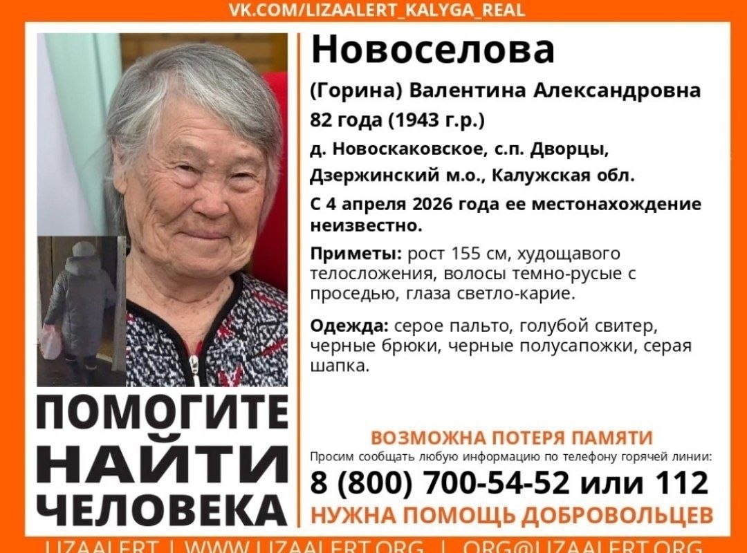 В последний раз женщину видели 4 апреля. Её приметы: рост 155 сантиметров, худощавого телосложения, темно-русые волосы с проседью, светло-карие глаза. На момент исчезновения была одета в серое пальто, голубой свитер, черные брюки, черные полусапожки и серую шапку. Ситуацию осложняет то, что пенсионерка может страдать потерей памяти.