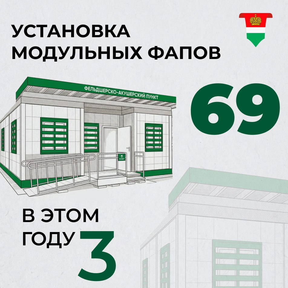 –Смонтировано 15 модульных ФАПов, а для нужд медиков закуплено 25 новых автомобилей.