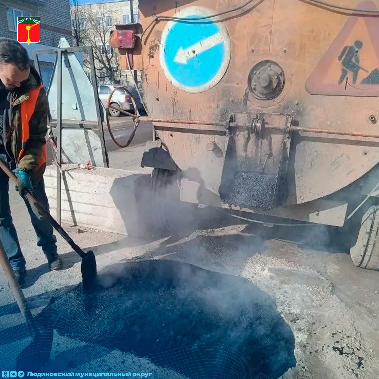 В центре Людиново начали ямочный ремонт