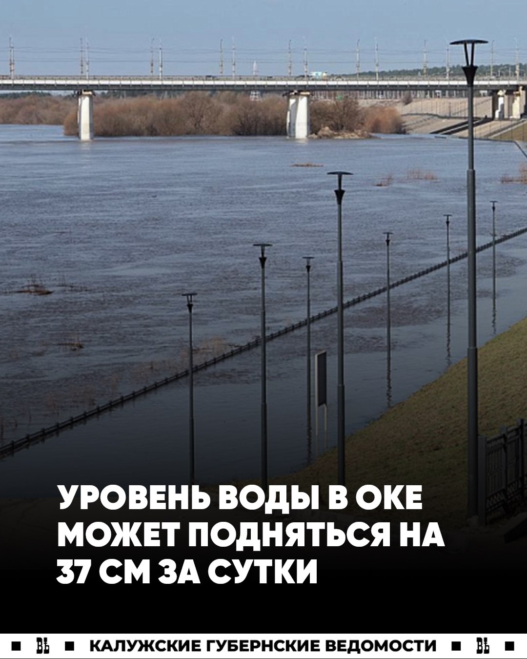 Уровень воды в Оке за сутки может подняться на 37 см, в Жиздре (в районе Козельска) – на 16 см, в Угре (в районе Товарково) – лишь на 1 см, а на Протве у Спас-Загорья – до 5 см.