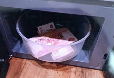 Пенсионерка вместе с мужем села в машину, доехала до нужного адреса, нашла квартиру с кодовым замком и оставила купюры в микроволновке. Для подтверждения она даже сфотографировала тайник и отправила снимок мошенникам.