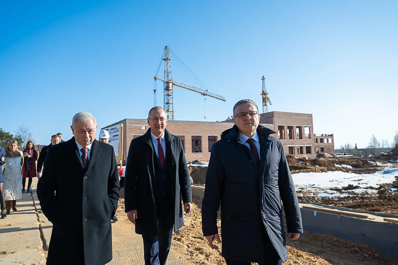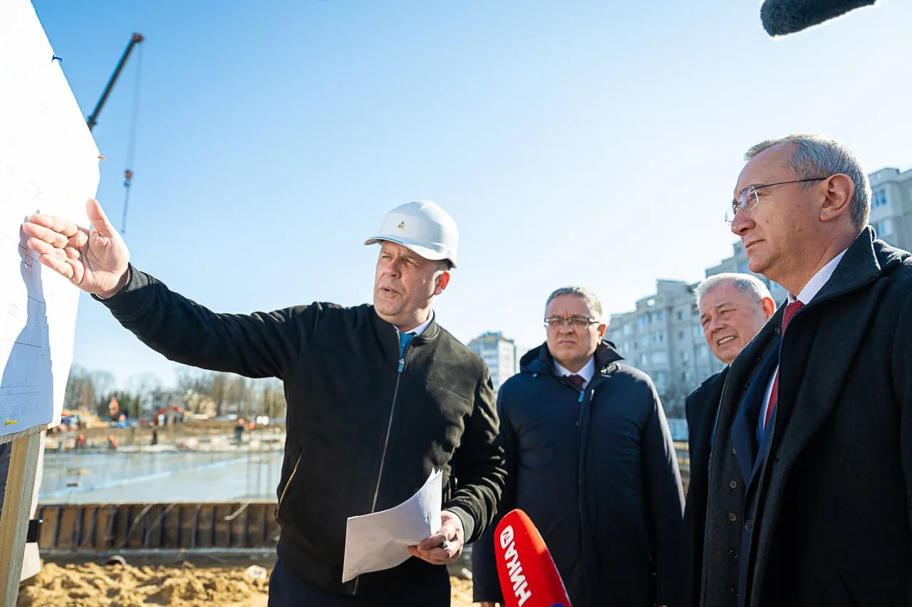 Перед отчетом губернатор Владислав Шапша, сенатор РФ Анатолий Артамонов и глава Калуги Дмитрий Денисов проверили ход строительства важных соцобъектов города – школ во Мстихино и на Тайфуне.