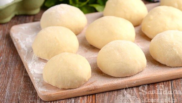 Для теста с яйцом потребуется 250 мл кефира, одно куриное яйцо, 0,5 ч. л. соли, 1 ст. л. сахара и 0,5 ч. л. соды. После того, как все компоненты соединены, добавляется 1 ст. л. растительного масла и 400 г муки. Как только тесто замешано, ему нужно отдохнуть.