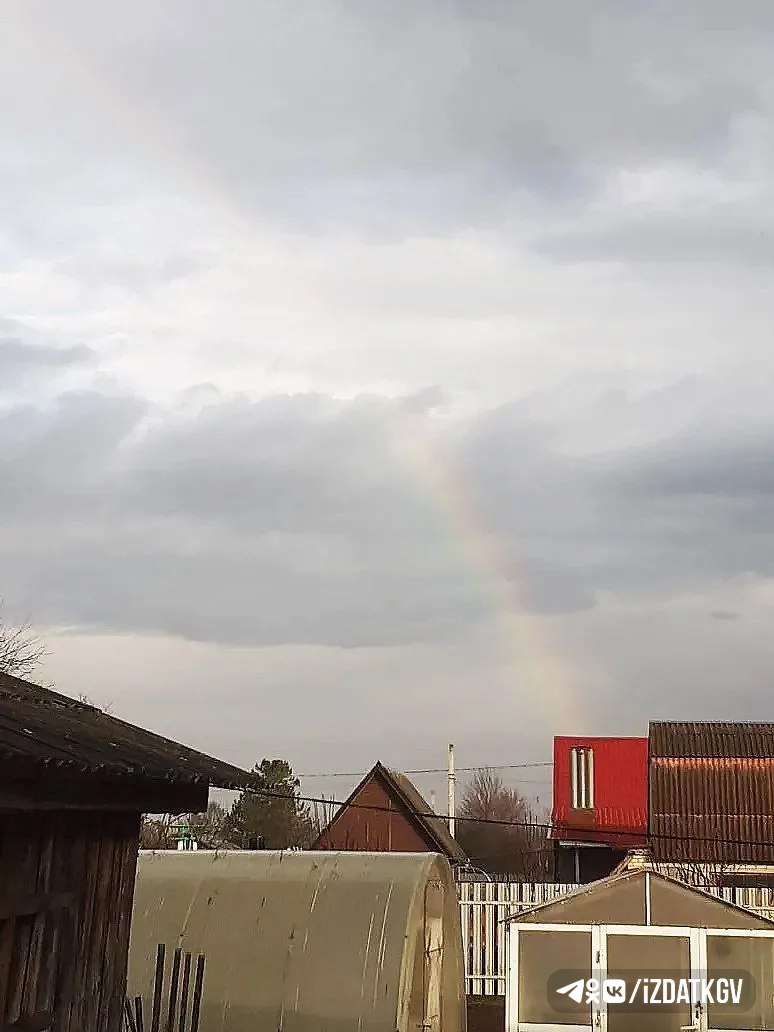 Радуга над Мещовском. Кадр был сделан 1 апреля. Автор фото: Людмила Молоканова
