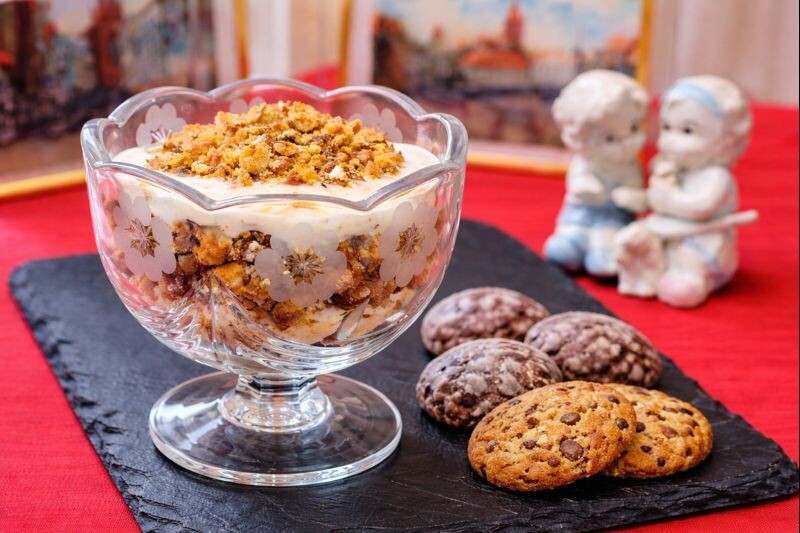 Для тех, кто не против немного подождать, десерт можно охладить в холодильнике на 20-30 минут. Однако, благодаря мягкости пряников и печенья, его можно есть сразу после сборки!