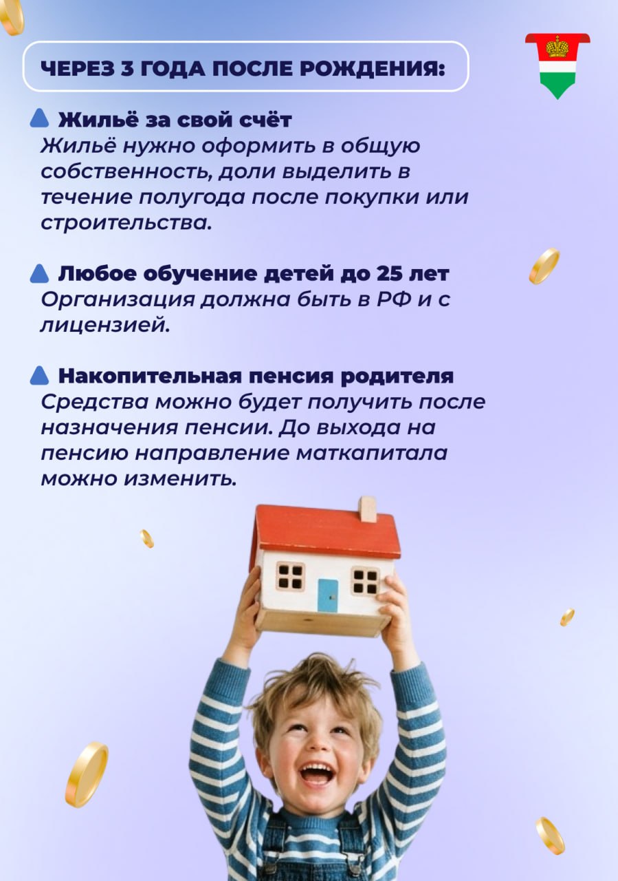 Право на меру поддержки имеют только граждане РФ: мать, отец-одиночка или единственный усыновитель. Подать заявление на использование средств можно через Госуслуги или в отделении СФР по месту жительства. А подробно о том, куда их можно потратить, рассказываем в карточках.
