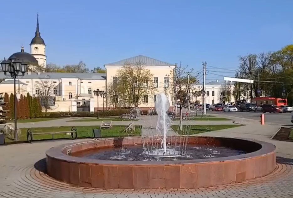 В Калуге начали включать фонтаны. Первым заработал фонтан на площади Старый Торг у здания областного правительства.