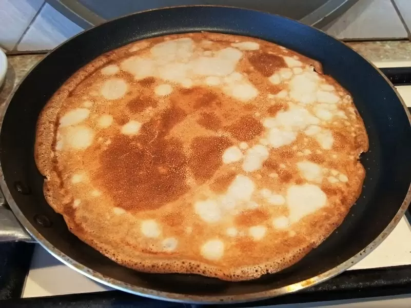 - Гарантированная нежность. Кипяток способствует запариванию муки, благодаря чему блины становятся тонкими и бархатистыми.