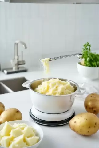 Важно помнить, что для достижения наилучшего результата нужно разминать горячий картофель как можно быстрее. В рецепт входят подогретое молоко и сливочное масло, добавляемые сразу после разминания. Это гарантирует, что ваше пюре останется нежным и вкусным.