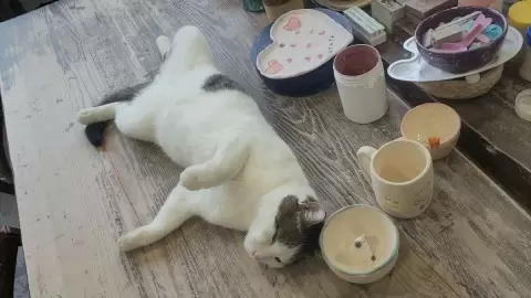 На фабрике шутят, что Василий - единственный сотрудник, который восседает на своем посту, полагаясь на инстинкты. Но он стал гораздо более важной фигурой, чем простой охотник. Кот активно участвует в жизни мастерской, неспешно прогуливается по этажам, заглядывая в каждую мастерскую. Порой он без стеснения устраивается на столе среди свежезавершенных изделий, краски и кисти, словно говорит: "Это мое, люди, просто примите это!"