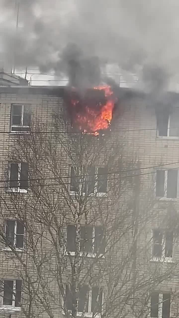 По словам очевидца, пожар вспыхнул на пятом этаже многоквартирного дома. Спасатели уже работают на месте.