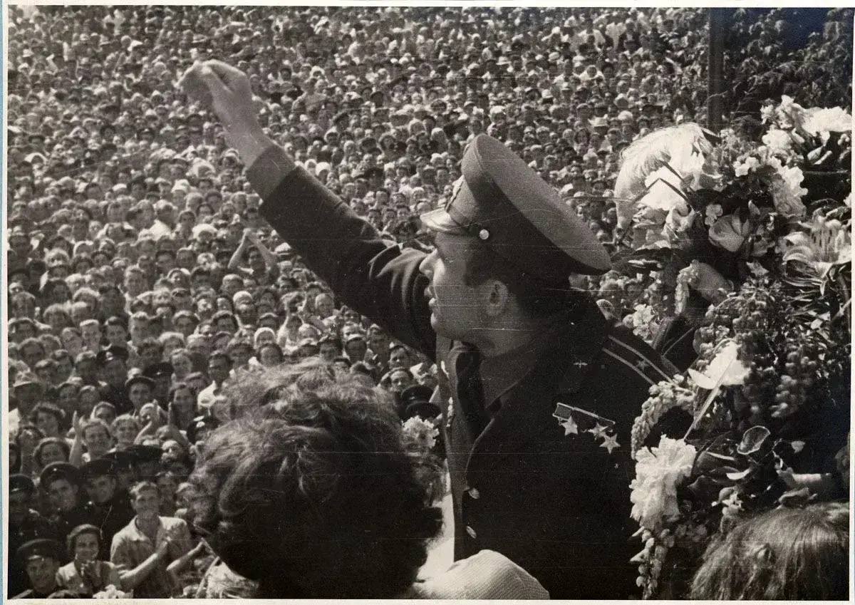 Исторические кадры из фонда Государственного музея истории космонавтики им. К.Э. Циолковского. Первый космонавт планеты на калужской земле.