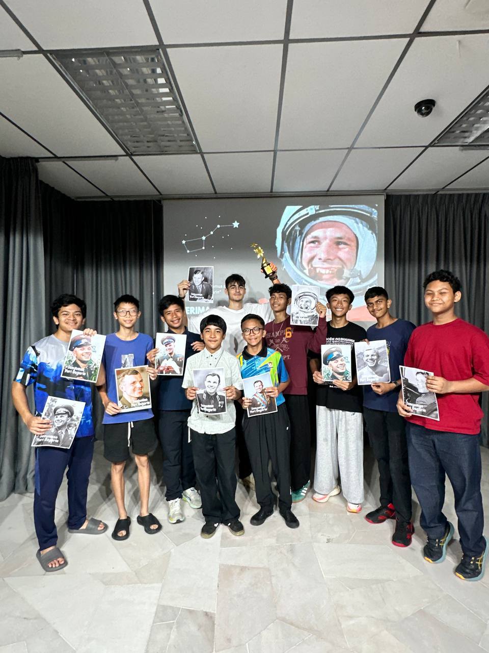 12 апреля с.г. в День Космонавтики состоялось официальное открытие и презентация Кубка Гагарина – чемпионата по баскетболу среди малайзийских школьников. Инициаторами проекта выступили студенты и преподаватели средней национальной школы SMK Seri Ampang. Они рассказали о символике названия Кубка и о том, какое значение этот турнир имеет для школьников Малайзии, вдохновляя их стремиться к достижениям и новым высотам.