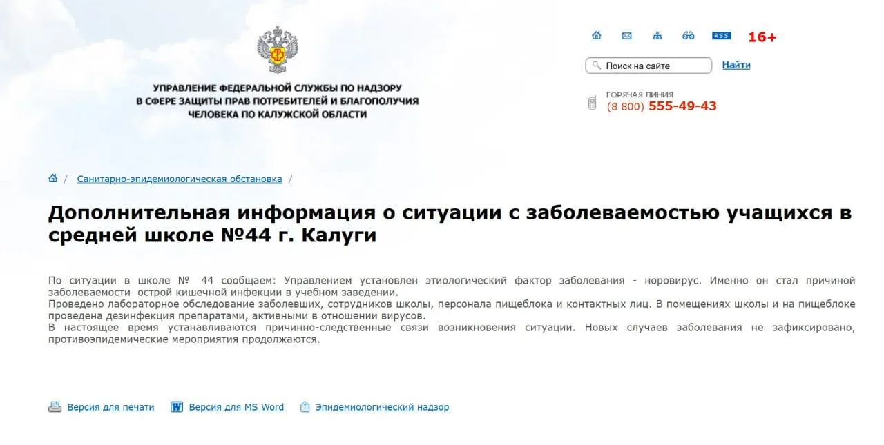 Роспотребнадзор обновил информацию по ситуации в школе №44