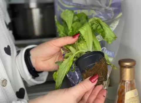 При покупке важно обратить внимание на горшочки с хорошей корневой системой. После возвращения домой, зелень была обрезана, но корни оставлены, чтобы обеспечить возможность повторного роста. Остатки салата, который в данный момент немного подвял, также вернули в оборот. Пластиковые контейнеры были аккуратно приготовлены для последующей посадки.