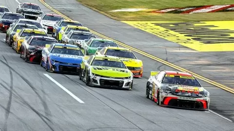 На напряжённом финальном рестарте гонки на легендарной трассе Talladega Superspeedway команда Hendrick Motorsports выдержала напряжение, контролируя обе полосы благодаря Уильяму Байрону и Кайлу Ларсону. Однако на последнем круге Бабба Уоллес и Чейз Бриско решили вырваться на внешнюю линию, что привело к драматическому окончанию гонки. В самый критический момент у Ларсона закончило топливо, и Бриско сумел обойти Уоллеса, а его напарник Тай Гиббс подталкивал его вперед.