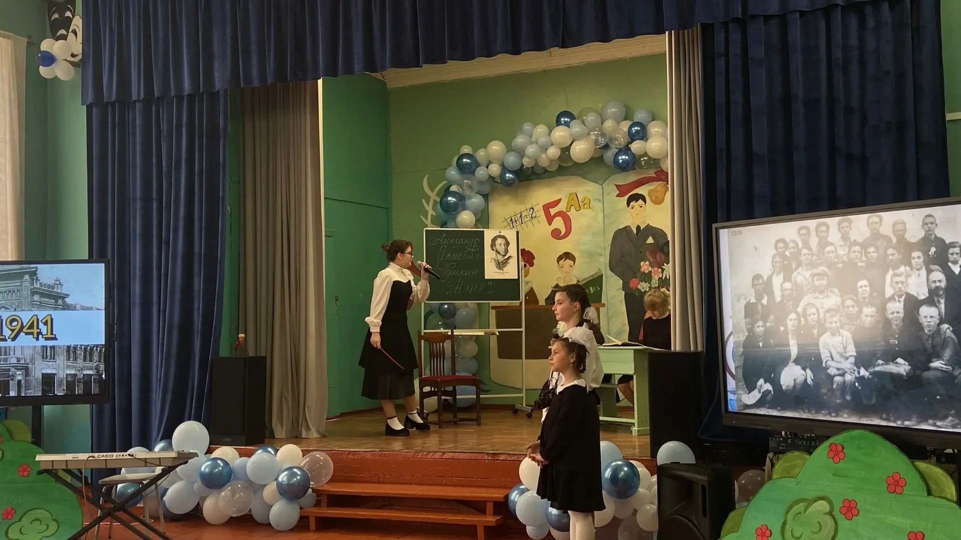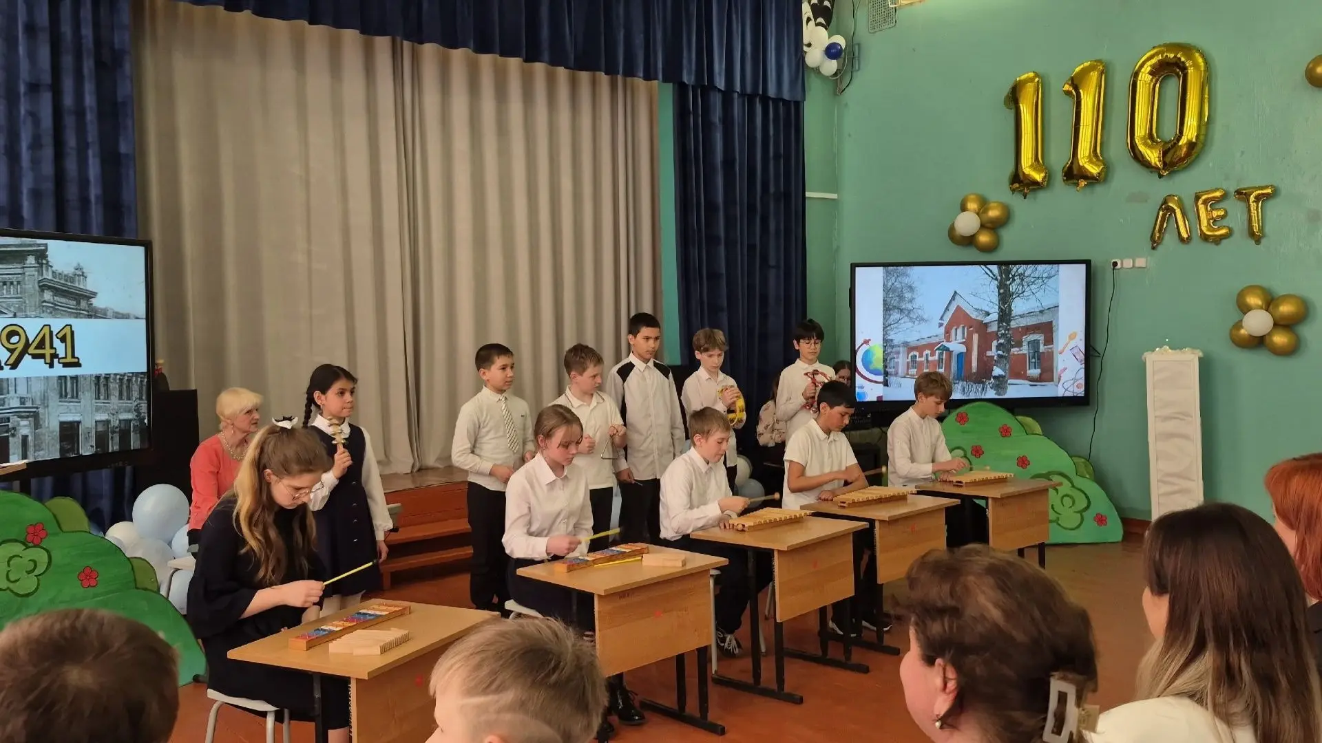Ученики вместе с учителями подготовили праздничный концерт, который превратился в настоящее путешествие сквозь время. Главные герои представления — отважные путешественники — отправились в 1916 год и, шаг за шагом, прошли через разные эпохи, до самых современных дней.