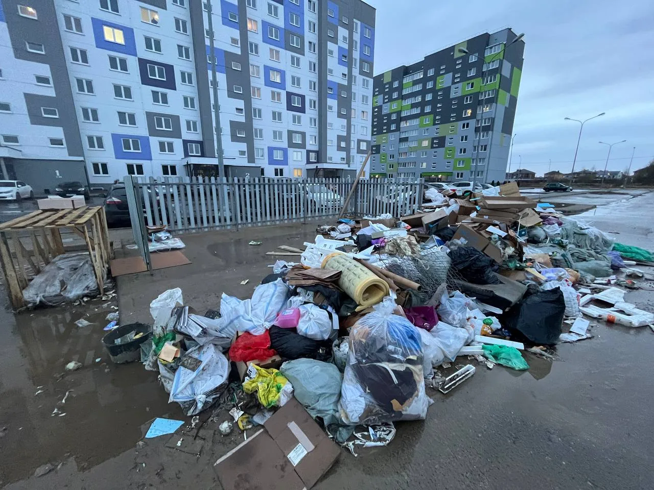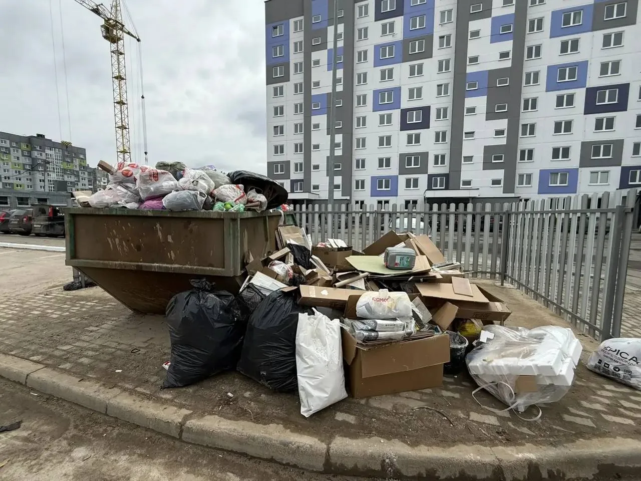 - В Калуге на Правом сдали новостройку, которую городские власти 4 месяца не могут обеспечить мусоркой для бытовых отходов. Есть только бак, который жители выбивали очень долго, и он всегда переполнен строительным мусором.