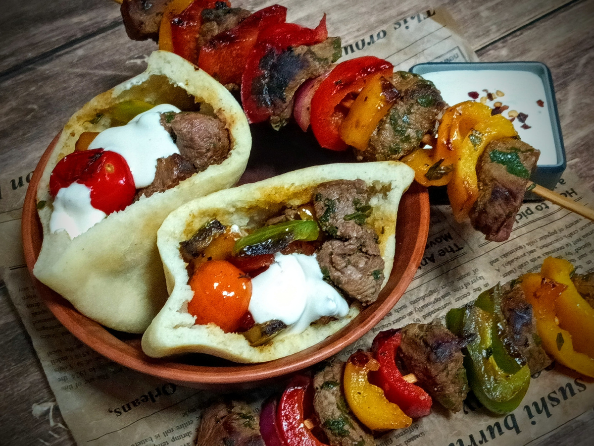 Ближневосточные шиш-кебабы из говяжьей вырезки и свежих овощей – это идеальный выбор для летнего ужина. Мясо и овощи проходят маринование по отдельности, а затем насаживаются на шпажки и приготовляются на гриле, наполняя воздух аппетитным ароматом. Подача в питах с изысканным соусом на основе феты, греческого йогурта и тахини придаёт блюду уникальный финальный штрих.
