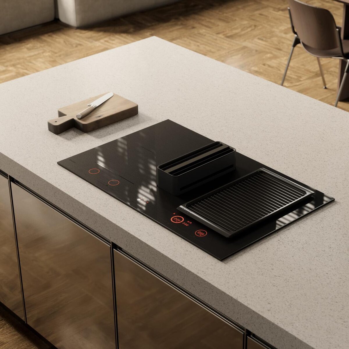 Эта индукционная варочная панель с интегрированной вытяжкой оснащена двумя мощными моторами, что позволяет не только быстро извлекать из кухни все лишнее, но и делать это тихо. Система фильтрации прокладывает новый стандарт на кухне благодаря двум встроенным фильтрам, которые можно легко мыть и обслуживать, обеспечивая при этом надежную защиту от запахов.