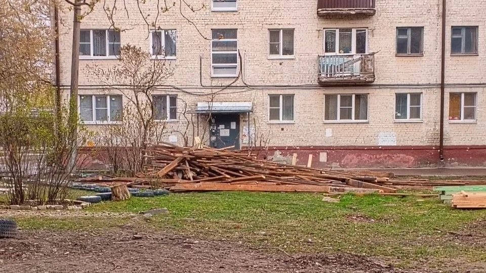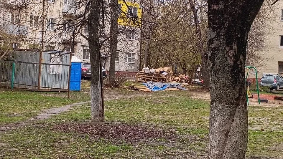 Во дворе на улице Московской оставили строительный мусор после ремонта